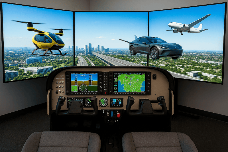 Introducing our augmented virtual reality flight simulators—experience aviation like never before.